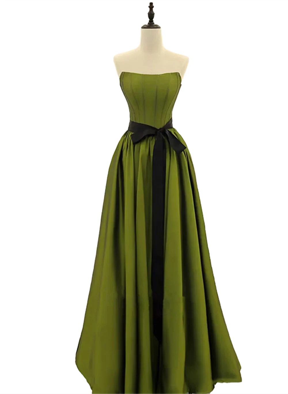 Green Satin Simple Long Formal Dress, A-line Green Long Evening Dress Prom Dress HZ1024