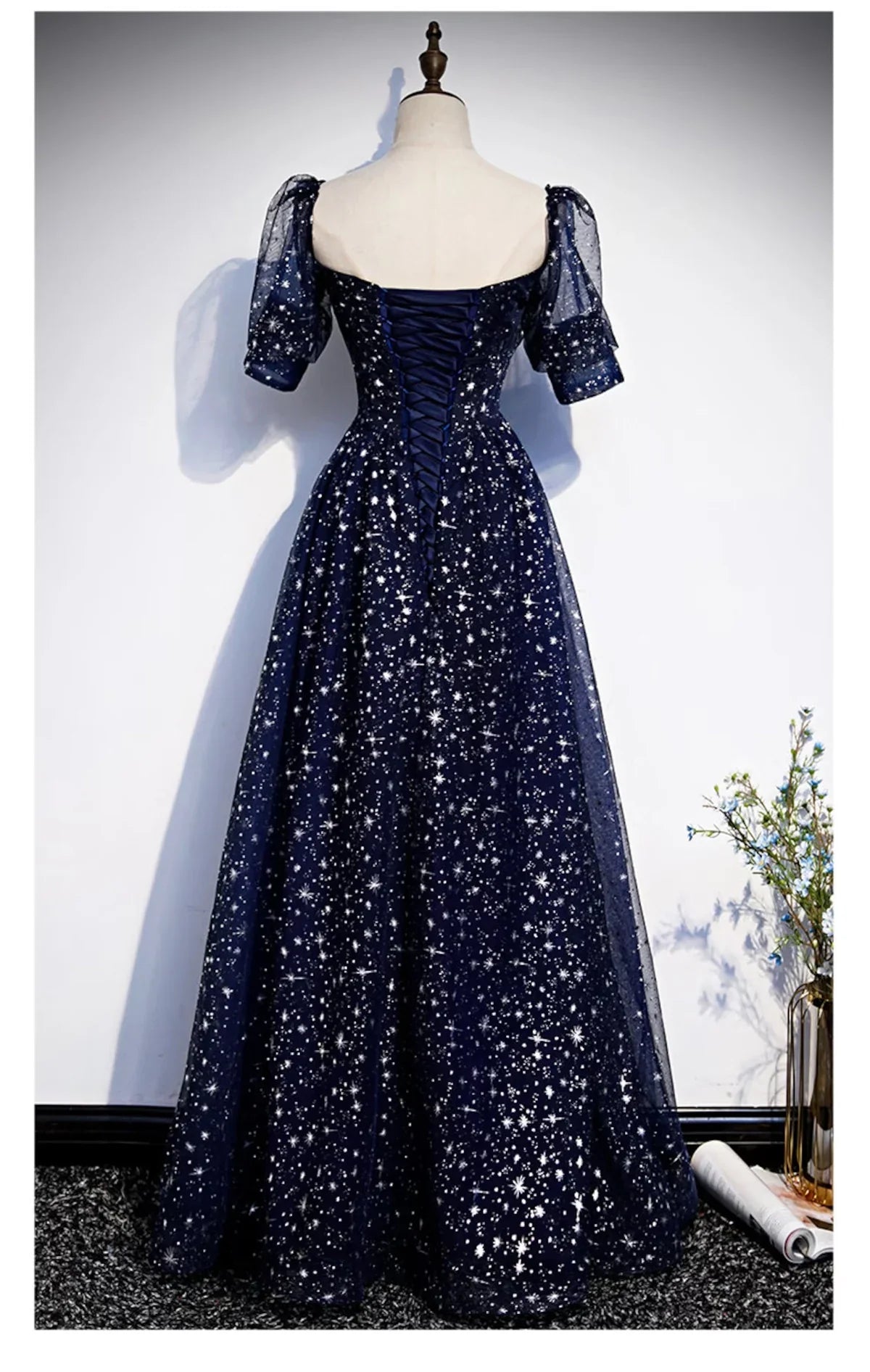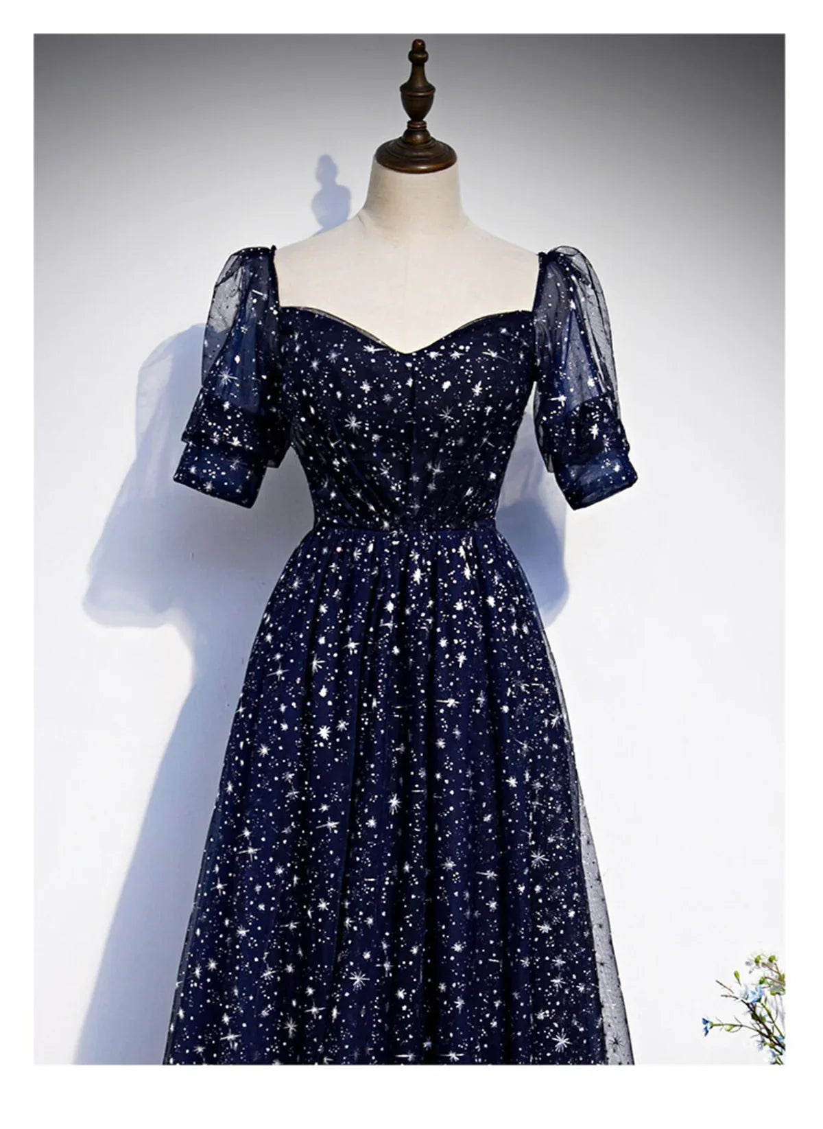 Navy Blue Tulle Simple Prom Dress, A-line Navy Blue Tulle Evening Dress HZ1024