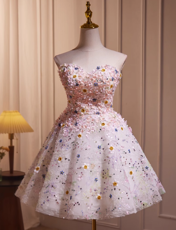 Charming Floral Embroidery Sequined Design Sleeveless Strapless Homecoming Dress HZ1024
