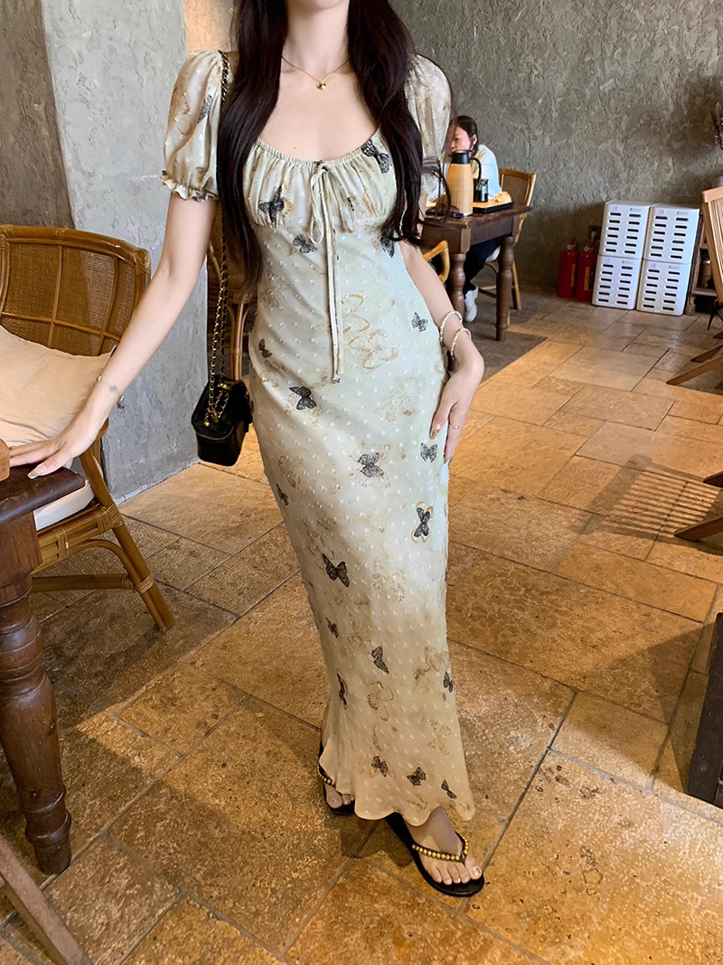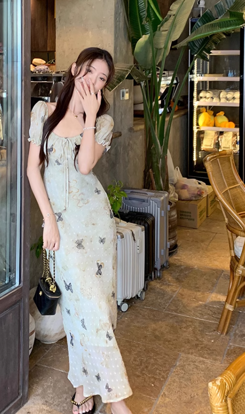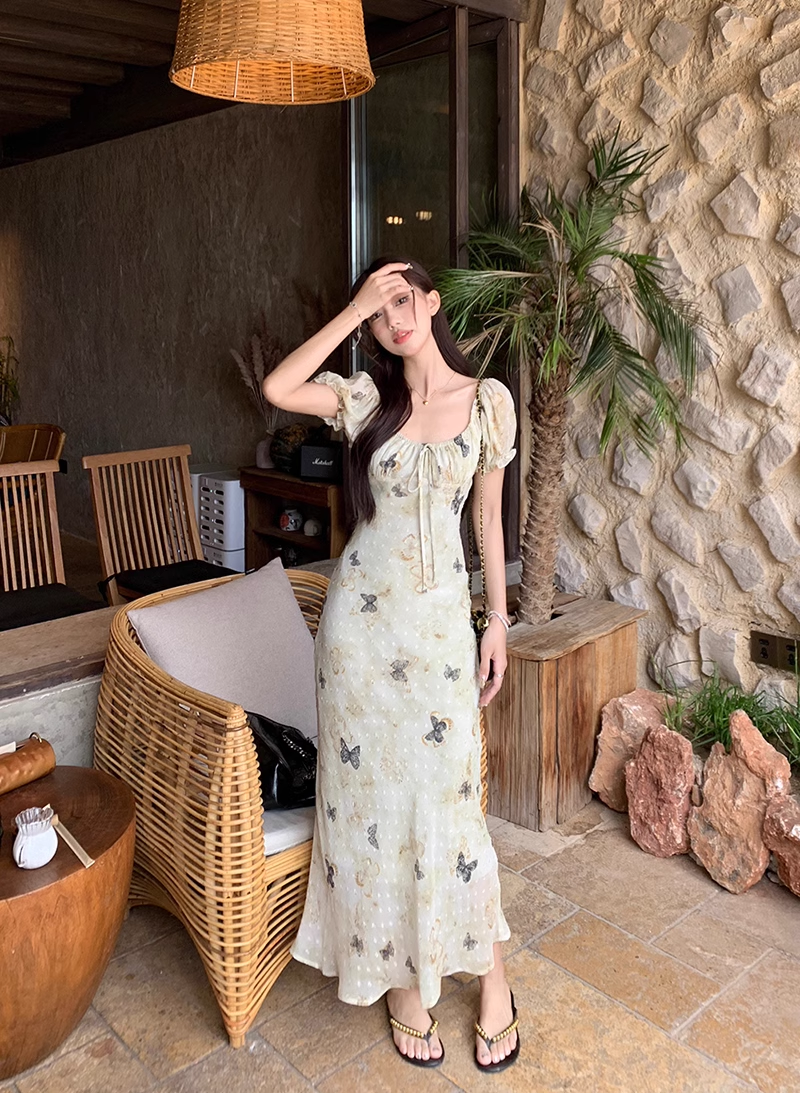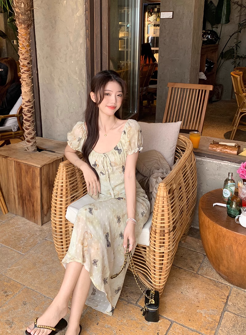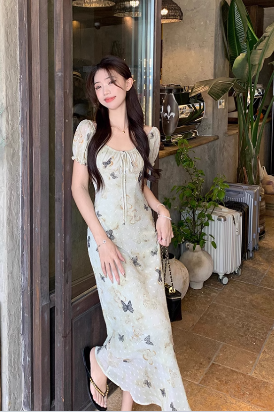 New Fashion Butterfly Design Short Sleeve Casual Floral Dress HZ1024