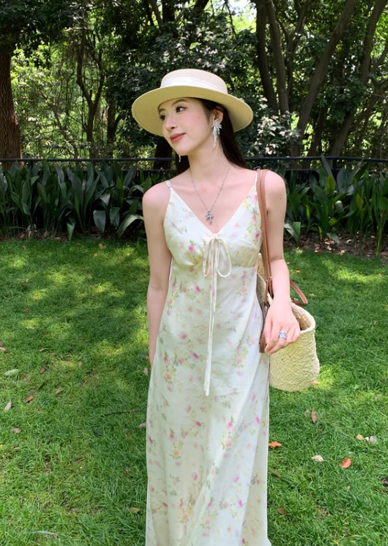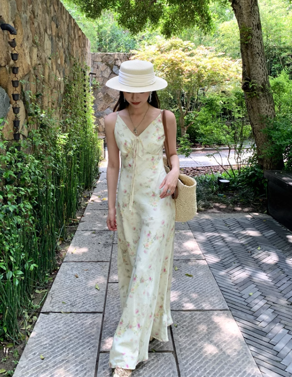 Retro Fashion Floral Design Beach Holiday A-line Spaghetti Strap Dress HZ1024