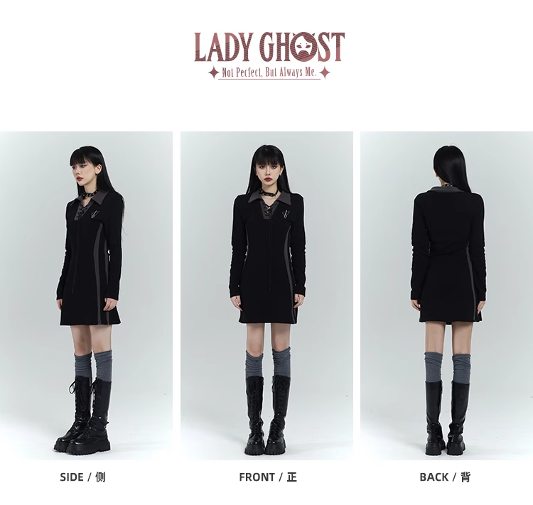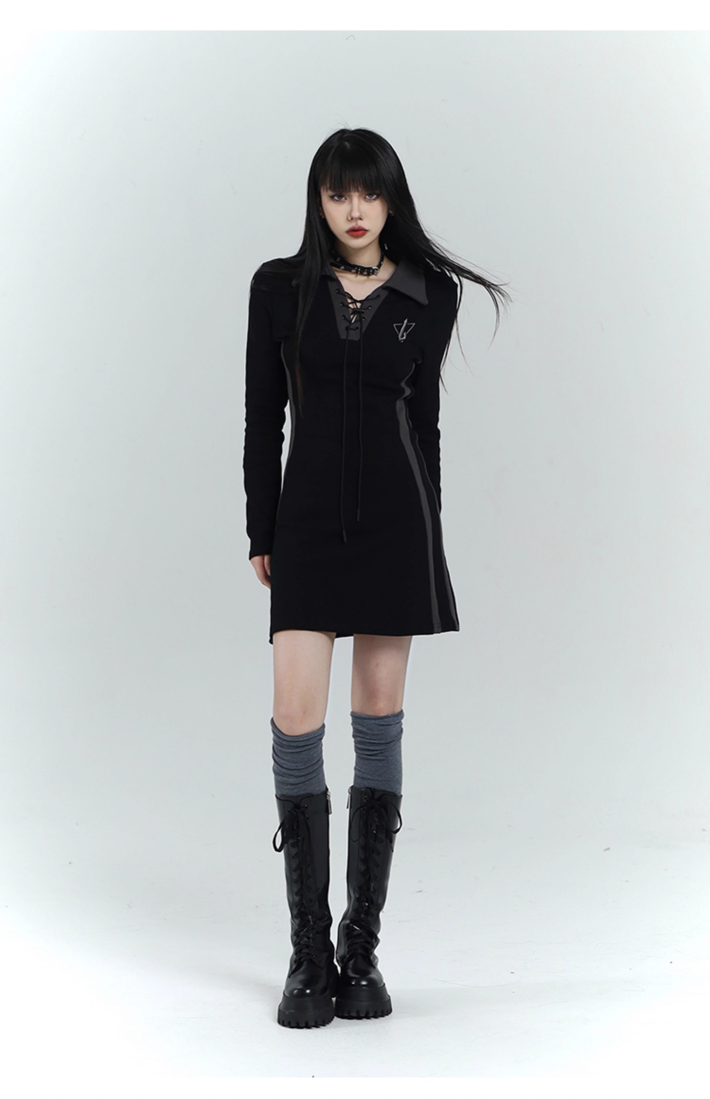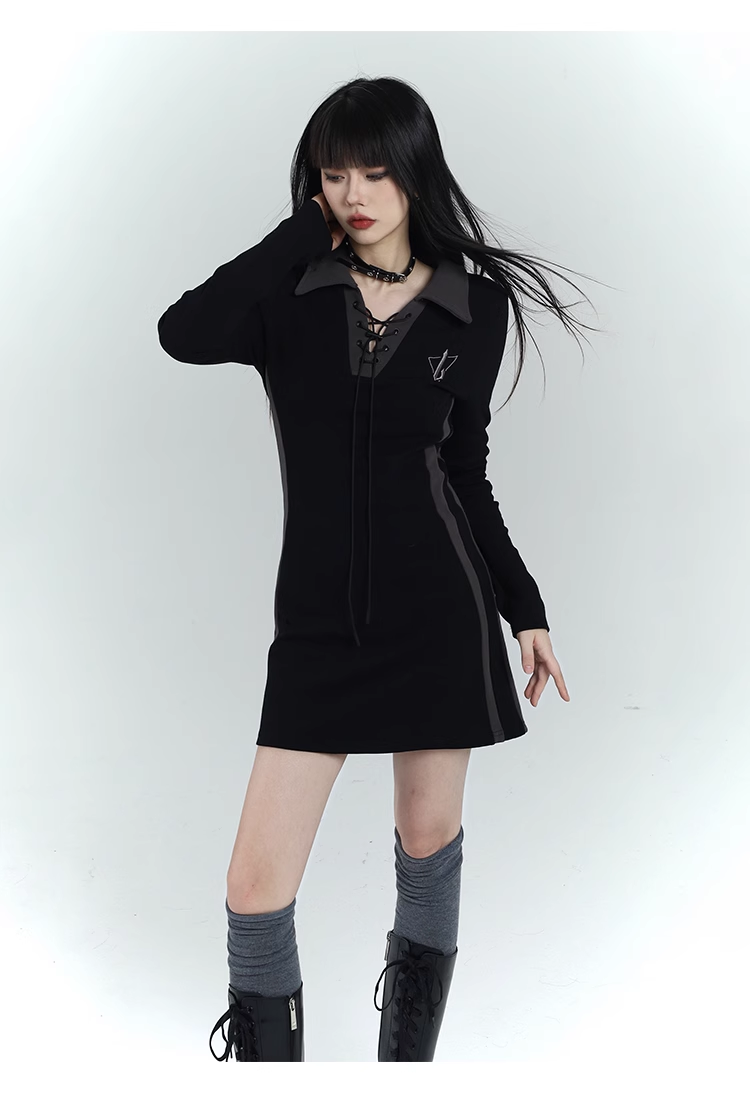 New Fashion Design Sense Short Black Long-sleeved Dress HZ1024