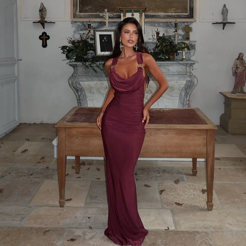 Simple Vintage Spaghetti Strap Sexy High-waist Slit Dress HZ1024