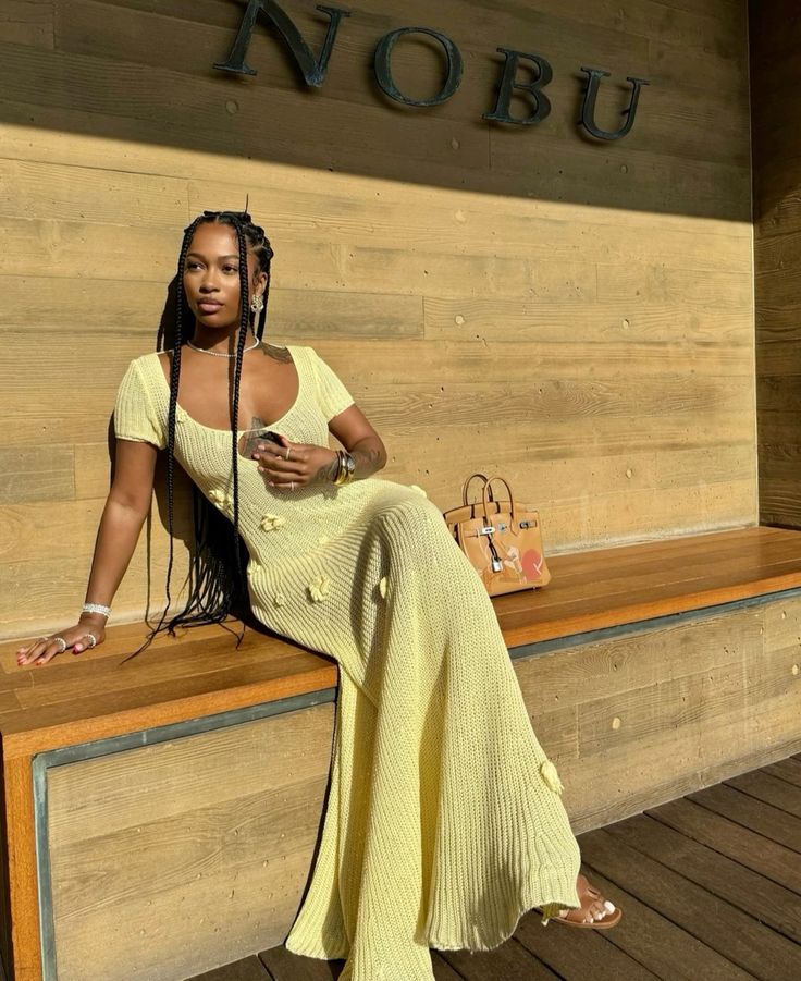 Sexy Light Yellow Short Sleeve Hollow Knitted Mermaid Floor Length Ball Gown Party Dress HZ1024