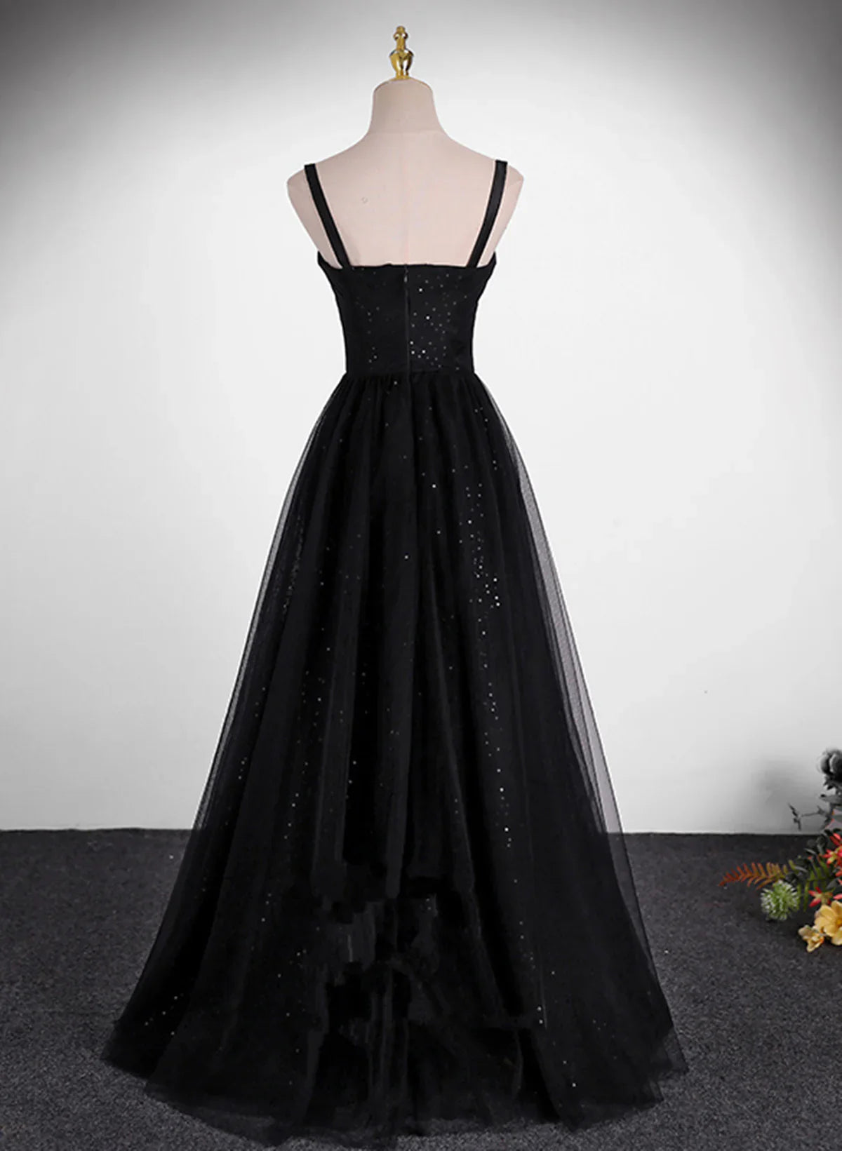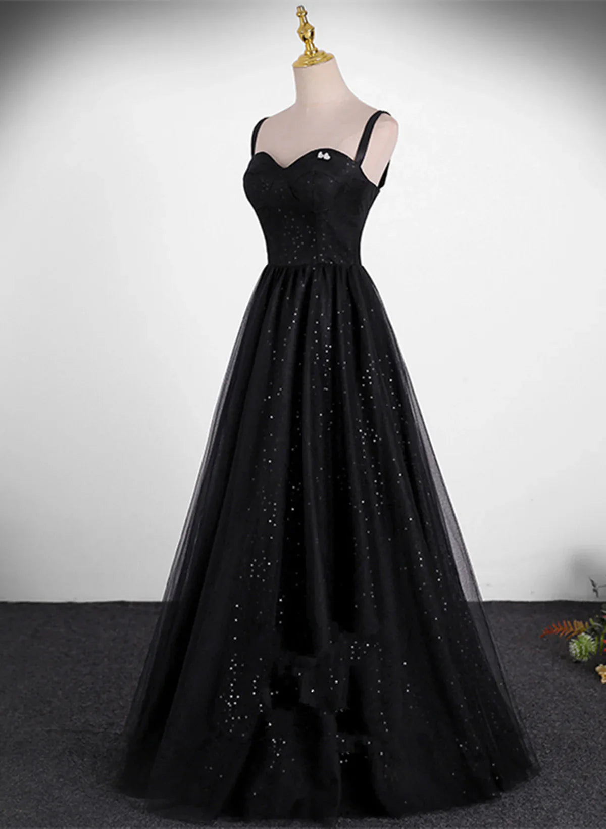 A-line Sweetheart Black Tulle Long Formal Dress, Black Simple Prom Dress HZ1024