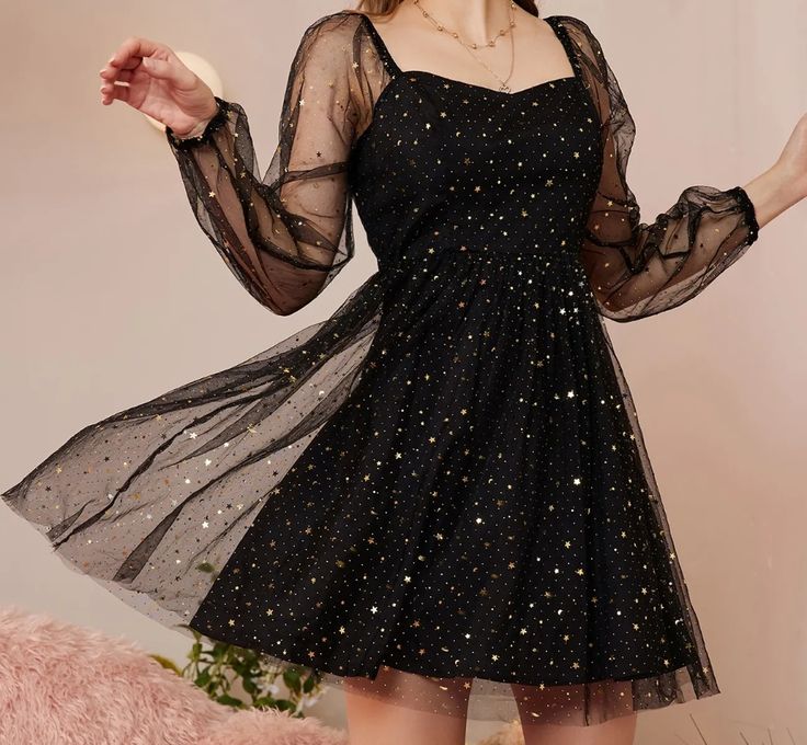 Black A-Line Long Sleeve Tulle Sequin Short Prom Dress Homecoming Dress HZ1024