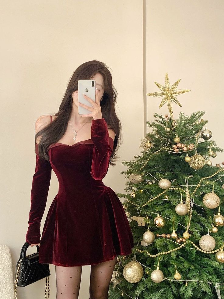 Burgundy A-line Off-shoulder Long Sleeve Velvet Mini Party Dress Homecoming Dress HZ1024