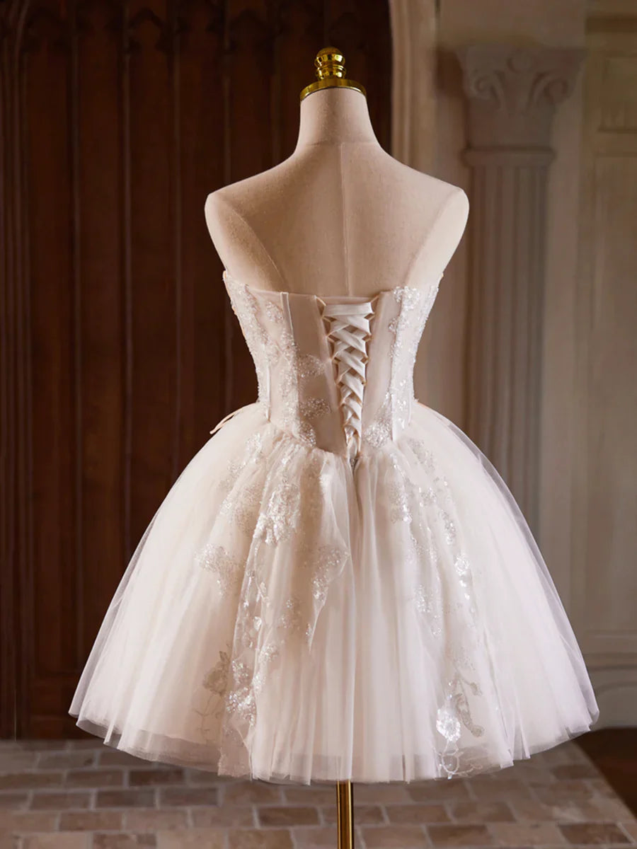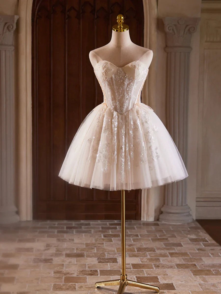 Champagne Strapless Tulle Sequins Short Prom Dress, Lovely Sweetheart Homecoming Party Dress HZ1024