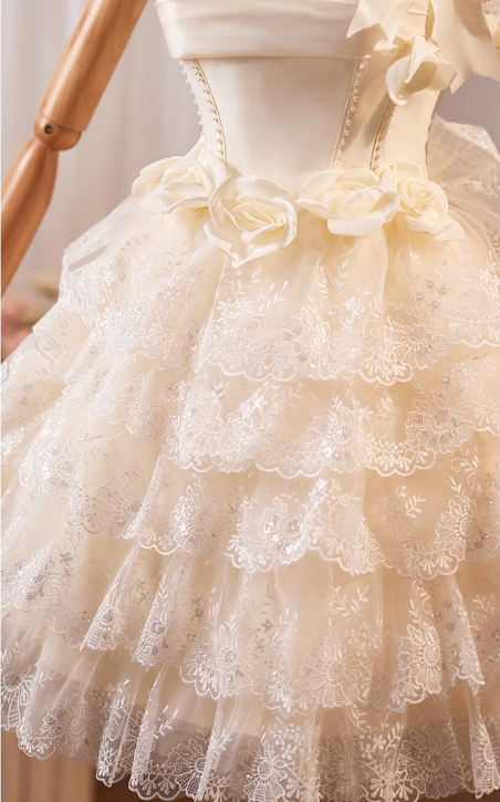 Charming Champagne Lace-edge Off-the-shoulder Design Mesh Tiered Homecoming Dress HZ1024