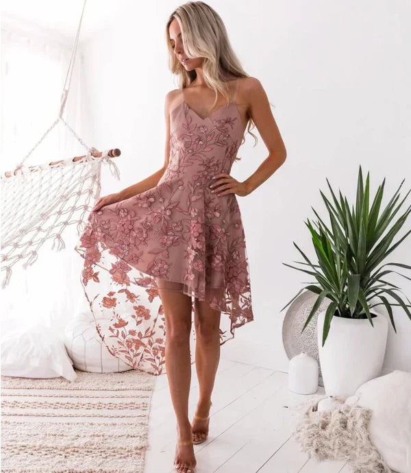 Charming Dusty Rose Lace Appliqued Design A-line Spaghetti Strap Homecoming Dress HZ1024