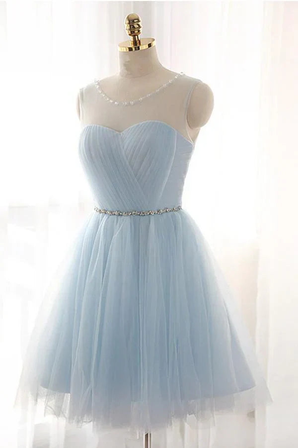 Charming Light Blue Tulle Satin Design Prom Dress A-line Homecoming Dress HZ1024