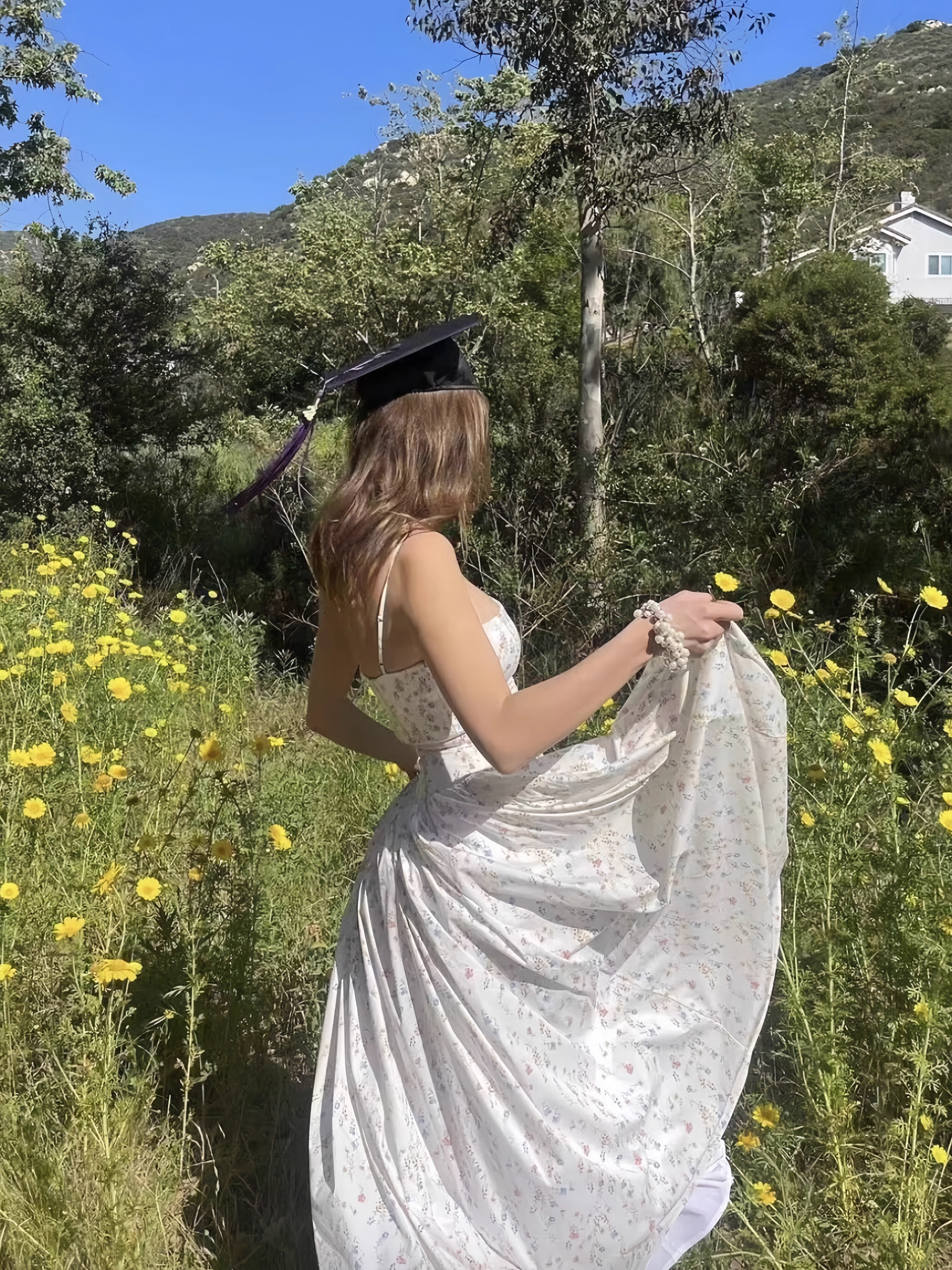 Chic Floral A-Line Spaghetti Strap Long Party Dress HZ1024