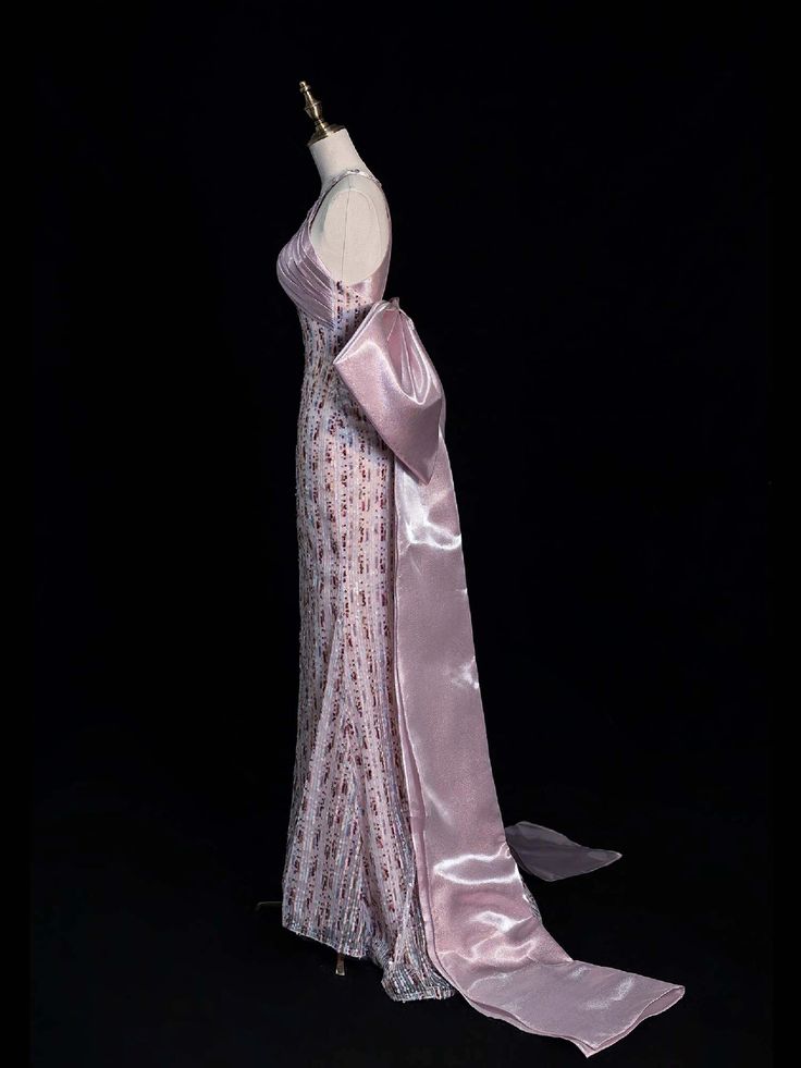 Chic Mermaid Off-shoulder Satin Bow Sequined Tulle Floor-length Ball Gown Evening Dress HZ1024