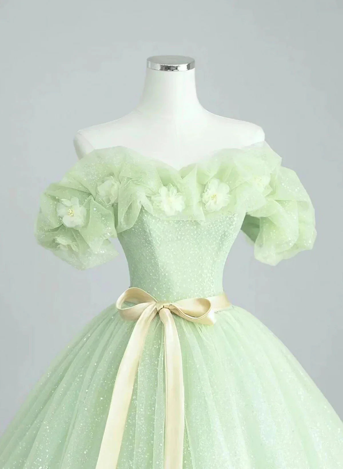 Cute Green Tulle Ball Gown Sweetheart Party Dress, Green Shiny Tulle Prom Dress HZ1024