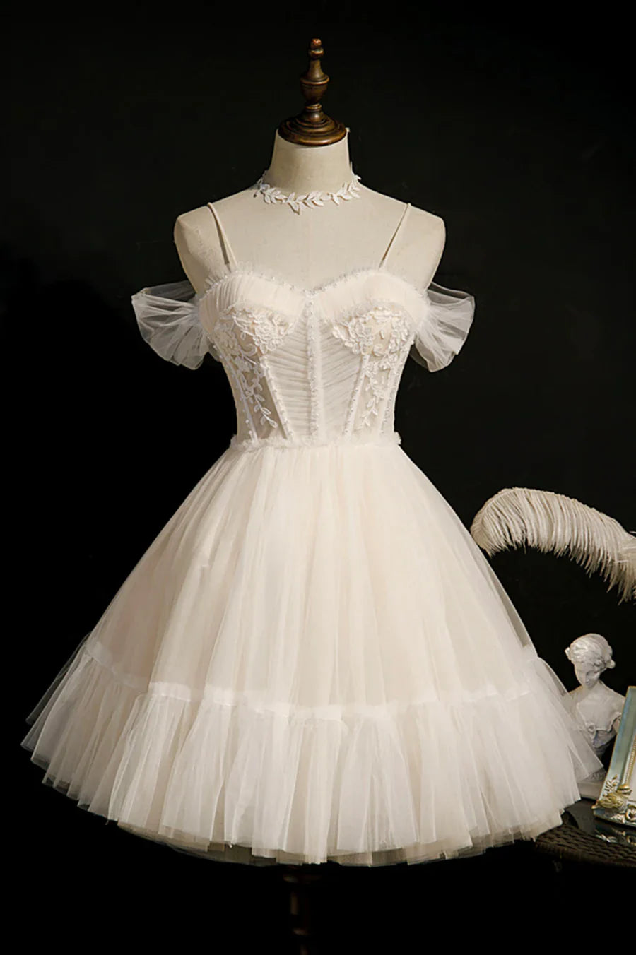 Cute Spaghetti Strap Lace Short Party Dresses, A-Line Evening Dresses HZ1024