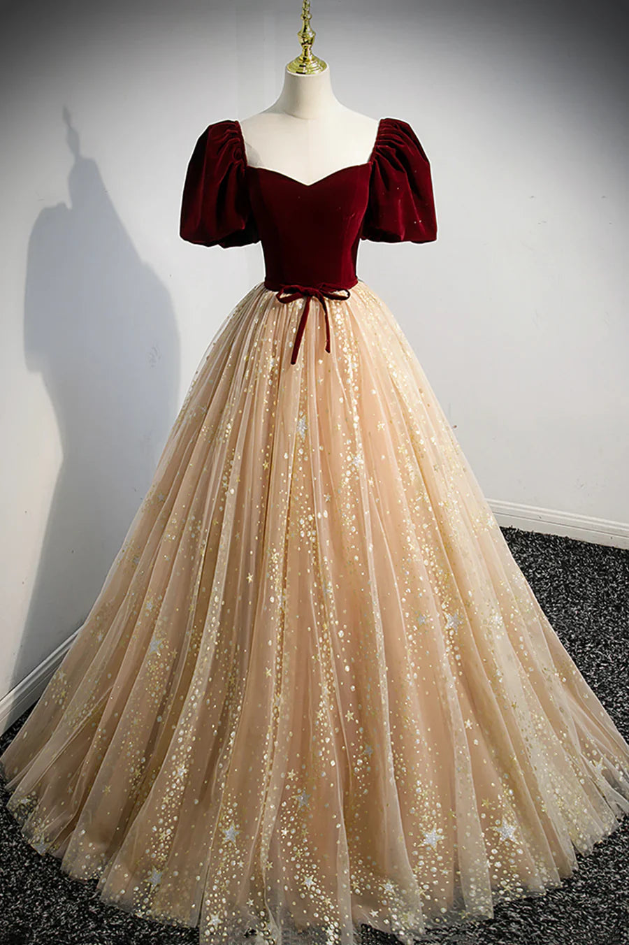 Cute Velvet Tulle Long Prom Dress, A-Line Evening Dress HZ1024