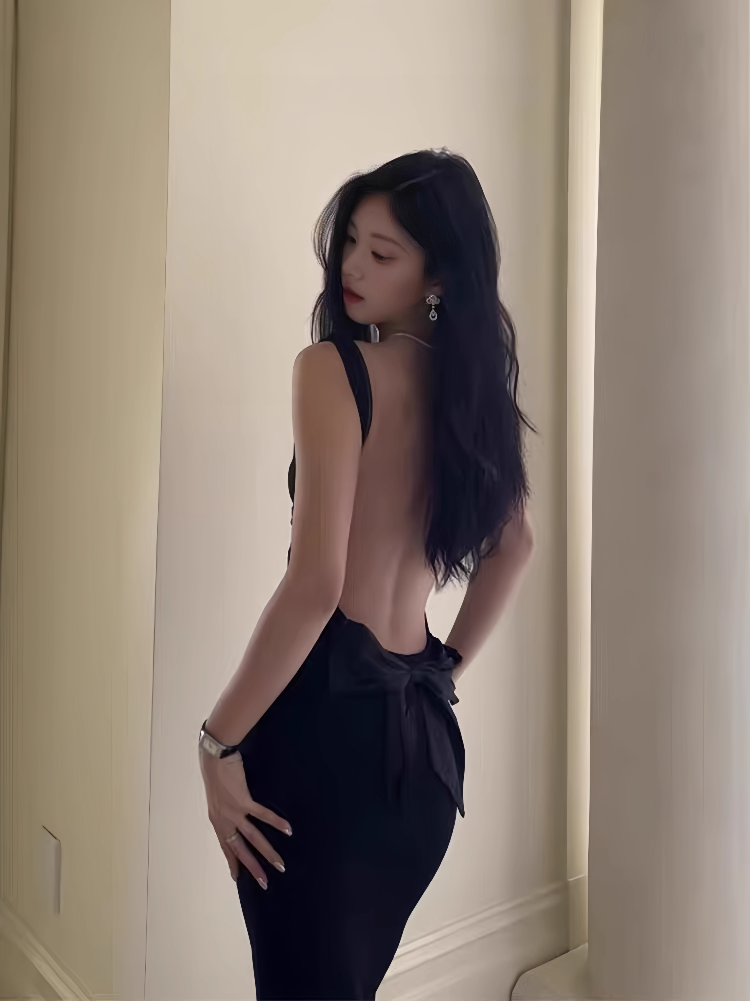 Elegant Black Bowknot Backless Mermaid Long Prom Dress Evening Dress HZ1024