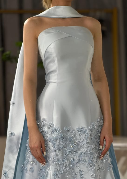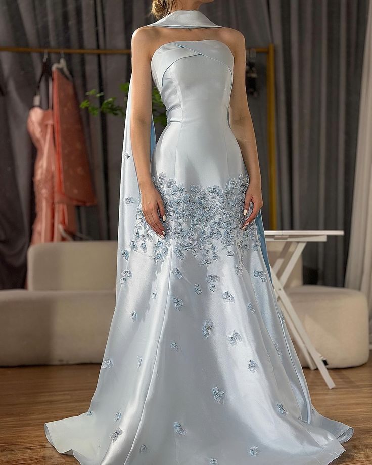 Elegant Blue A-line Strapless Satin Floor Length Formal Prom Dress Evening Dress HZ1024