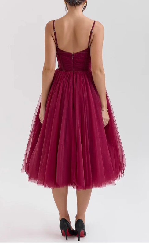 Elegant Burgundy A-Line Evening Gown Sweetheart Spaghetti Strap Party Dress Tulle Long Formal Dress HZ1024