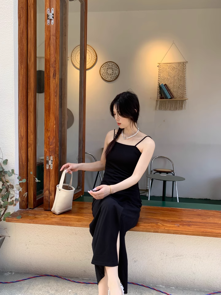 Elegant Fashion Black Sleeveless Spaghetti Strap Dress HZ1024
