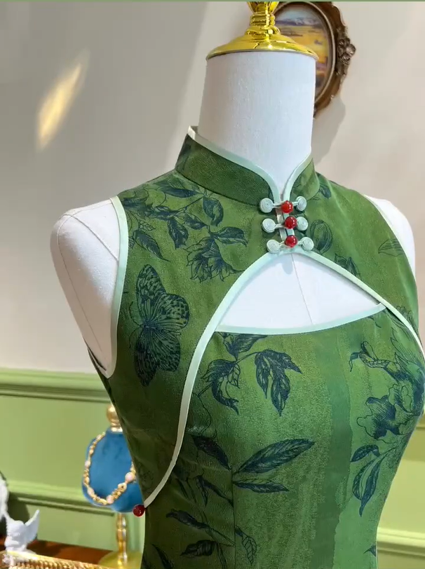 Elegant Green Mermaid Sleeveless Slit Hollow Ball Gown Evening Dress HZ1024