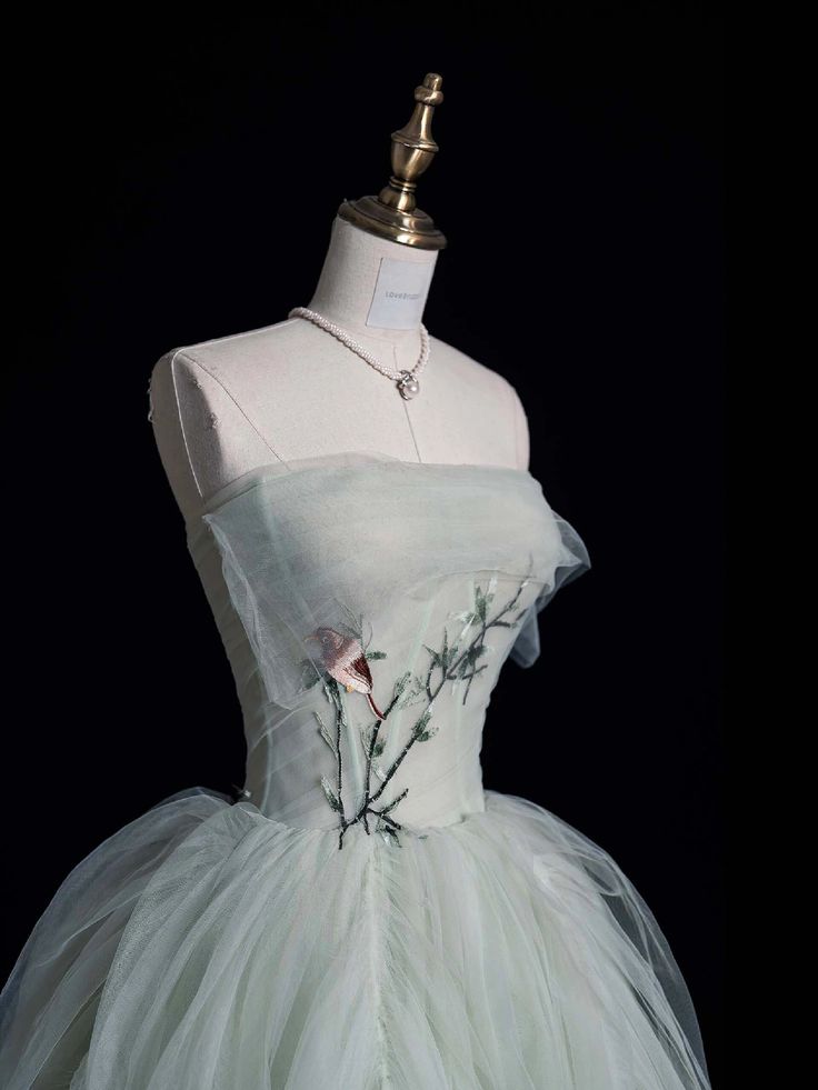 Elegant Green Strapless A-Line Tulle Long Prom Dress Evening Dress HZ1024