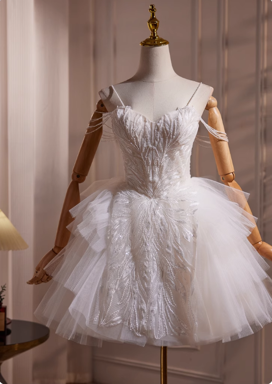 Elegant White Beaded Design Party Dress A-line Spaghetti Strap Short Homecoming Dress HZ1024