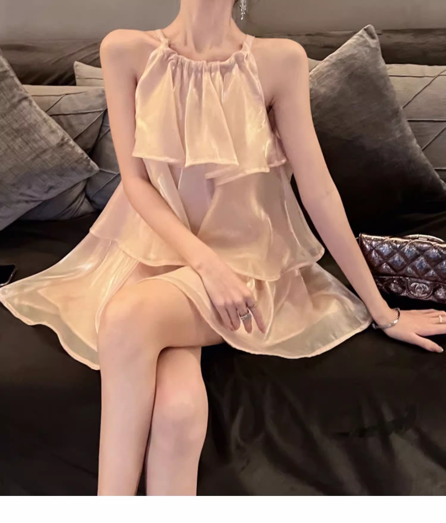 Fashion Champagne Tulle Sleeveless Tiered Homecoming Dress HZ1024