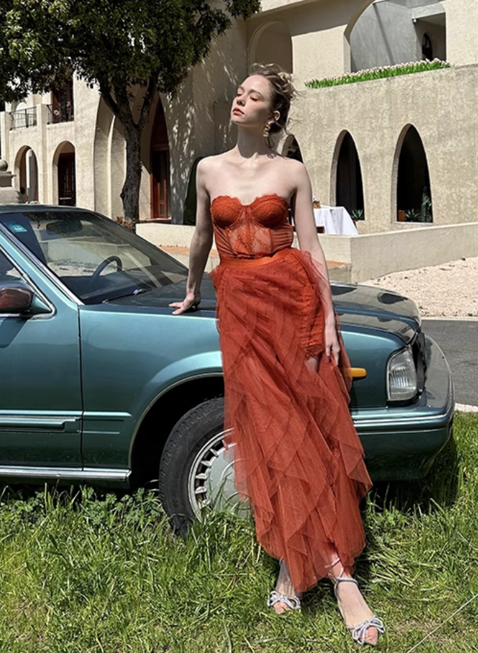 Fashion Sweetheart Sheath Strapless Design A-line Tulle Women Dress HZ1024