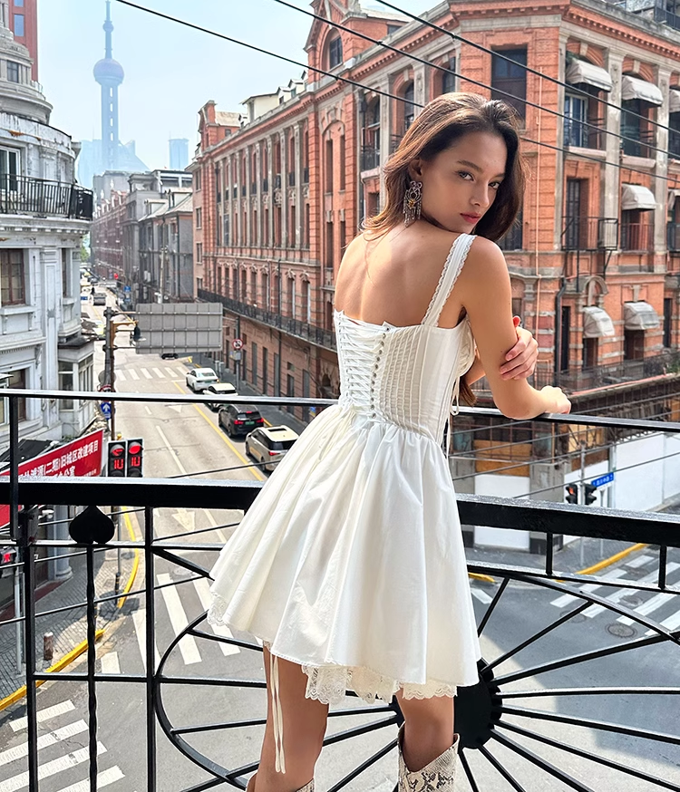 Fashion White Lace Design A-line Lace-up Party Dress Homecoming Dress HZ1024