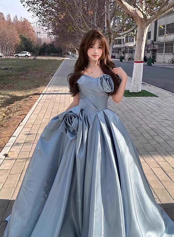 Gorgeous 3D Flowers Sweet 16 Quinceanera A-Line Off-the-shoulder Satin Evening Dress Ball Gown HZ1024