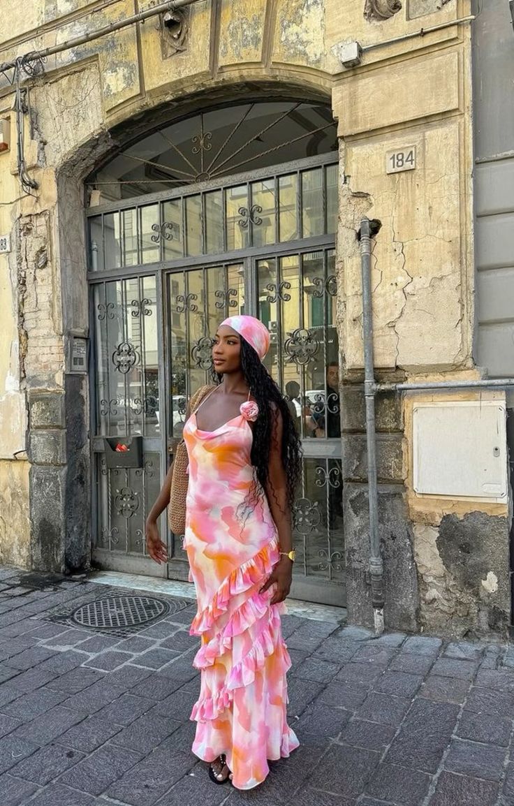 Gorgeous Colorblock Halter Neck Sleeveless Chiffon Ruffle Ankle-Length Prom Dress HZ1024