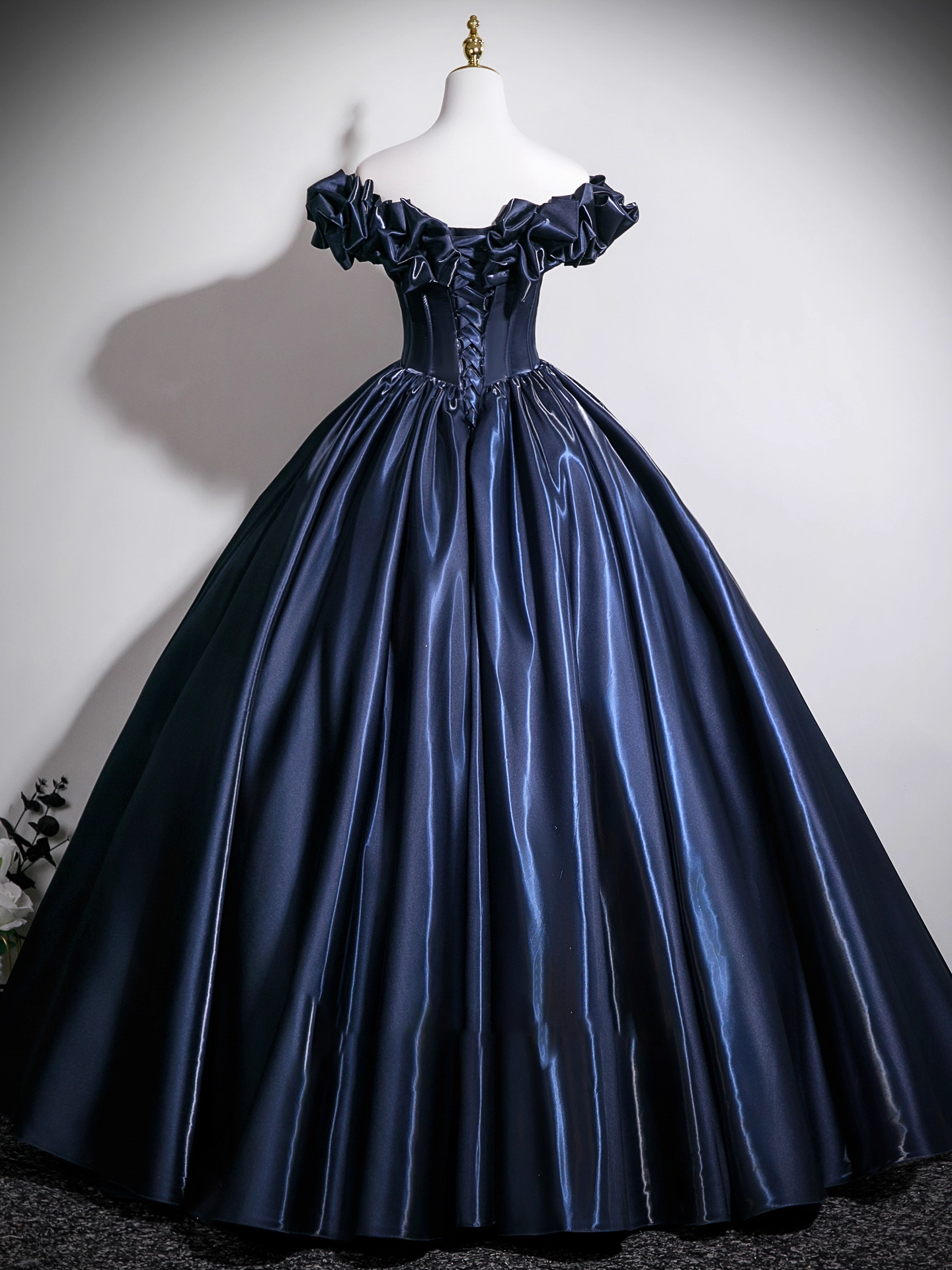 Gorgeous Navy Blue Satin Off-the-shoulder Sweet 16 Quinceanera A-Line Ruffled Evening Dress Ball Gown HZ1024
