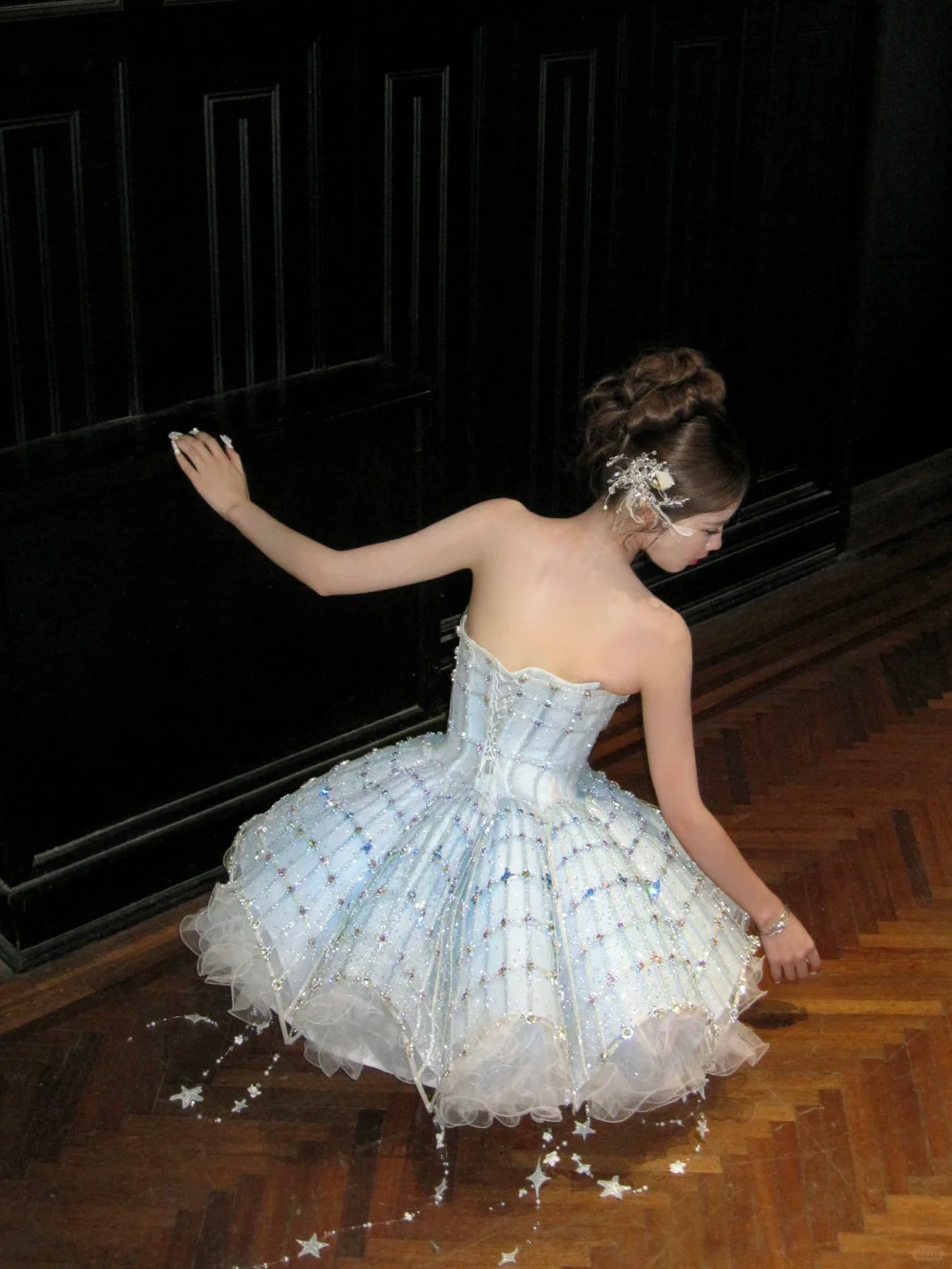 Gorgeous Shiny Light Blue Sequined A-Line Strapless Design Tiered Party Dress Homecoming Dress HZ1024