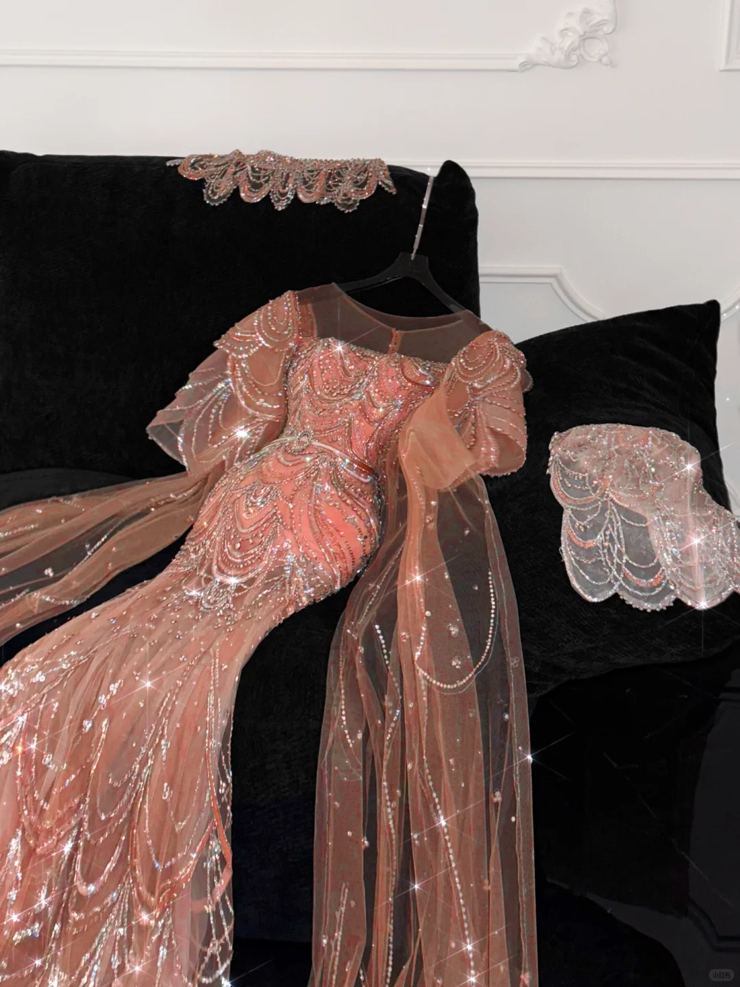 Gorgeous Shiny Orange Beaded Sequined Design Mermaid Prom Dress Evening Dress HZ1024