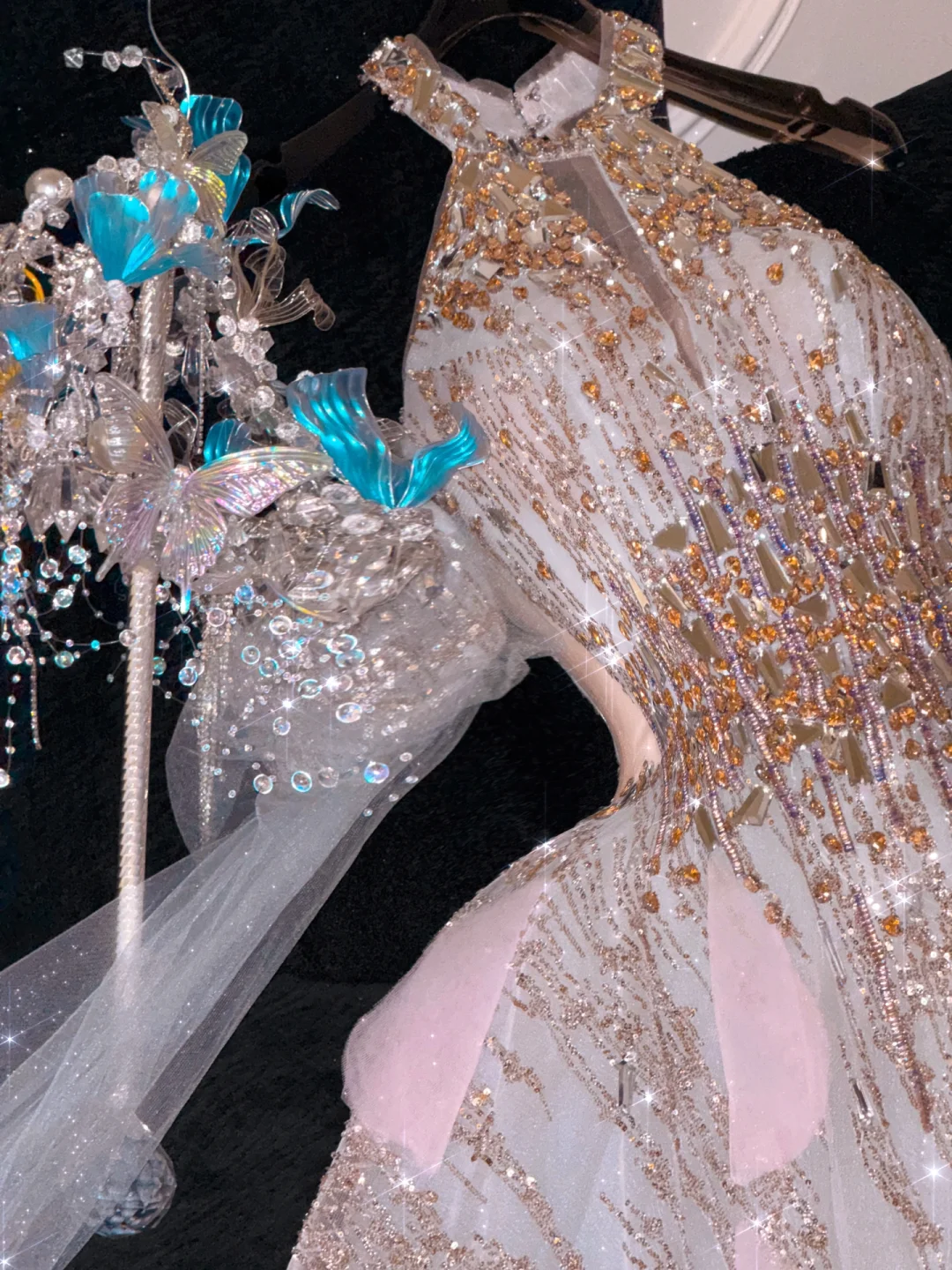 Gorgeous Shiny Pink Beaded Sequined Design A-Line Prom Dress Evening Dress Ball Gown HZ1024