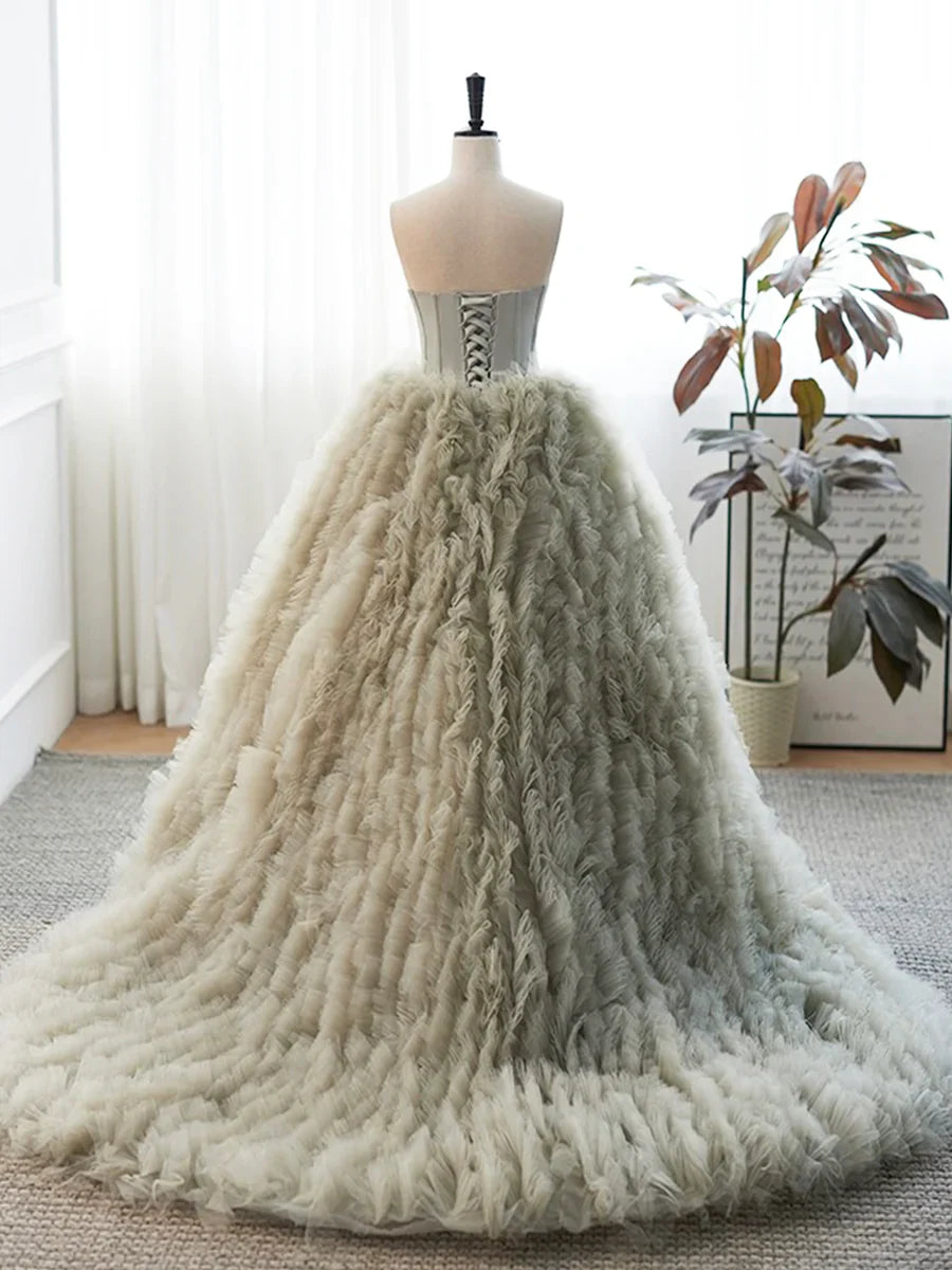 Gray Strapless Tulle Long Prom Dress, Beautiful A-Line Sweetheart Neck Formal Evening Dress HZ1024