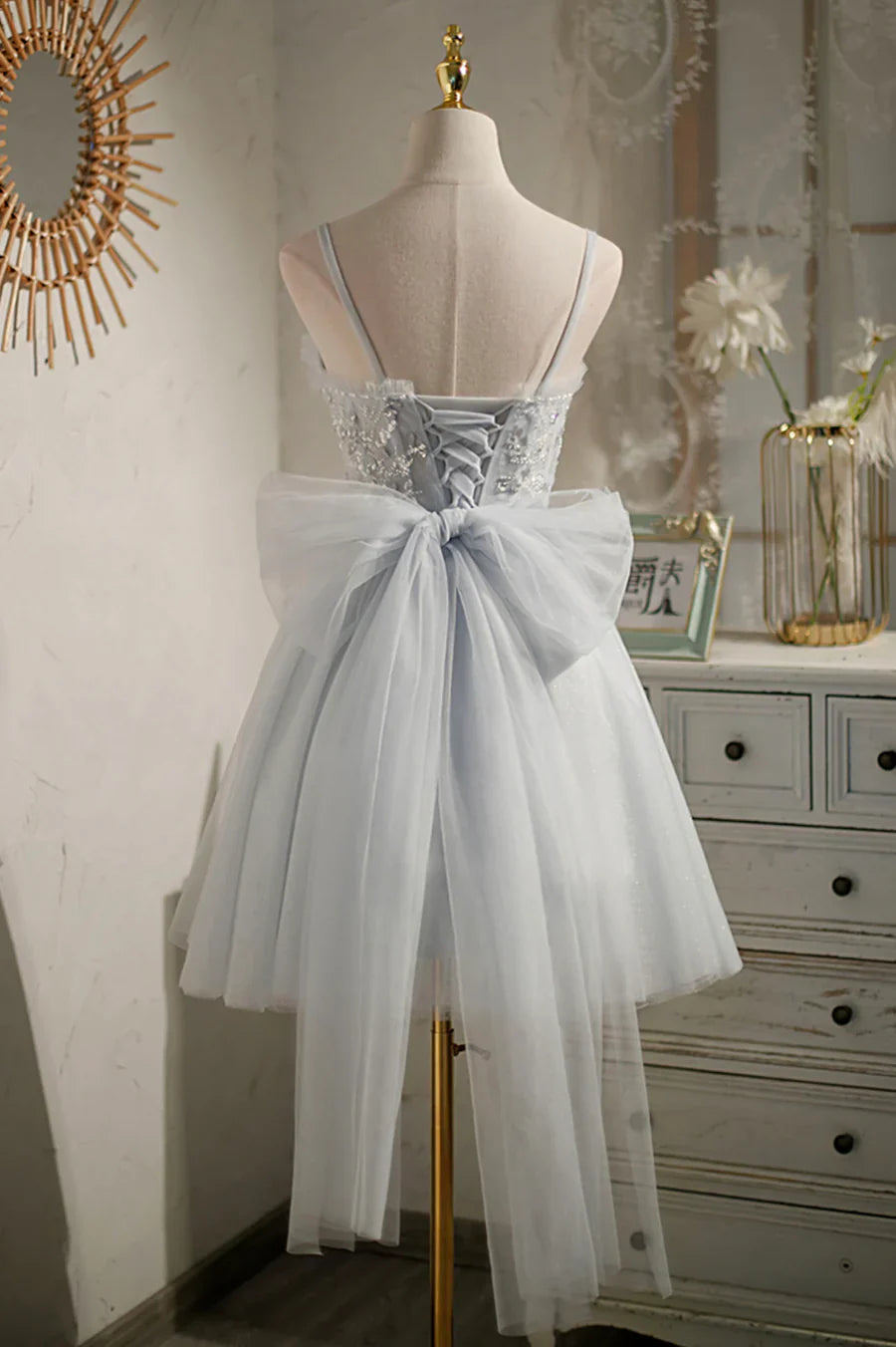 Gray Tulle Short A-Line Prom Dress, Cute Evening Party Dress HZ1024