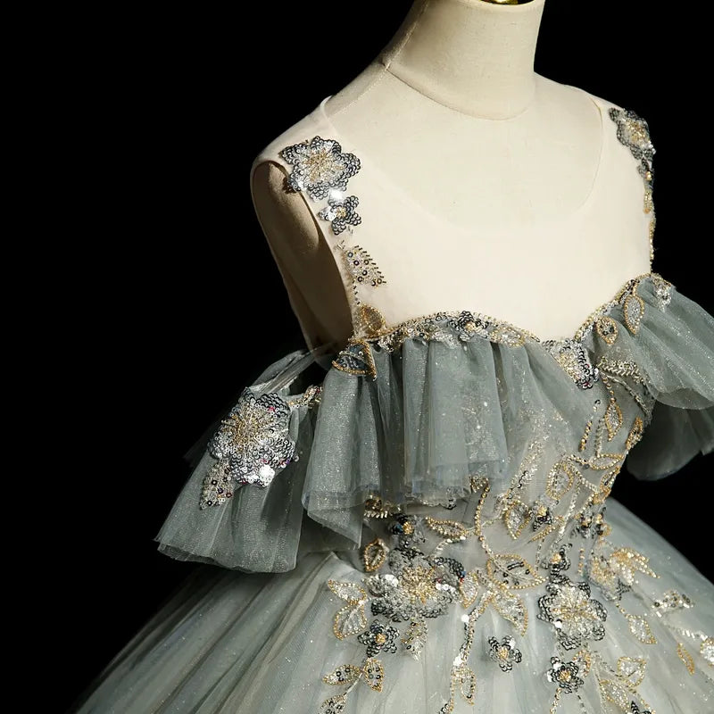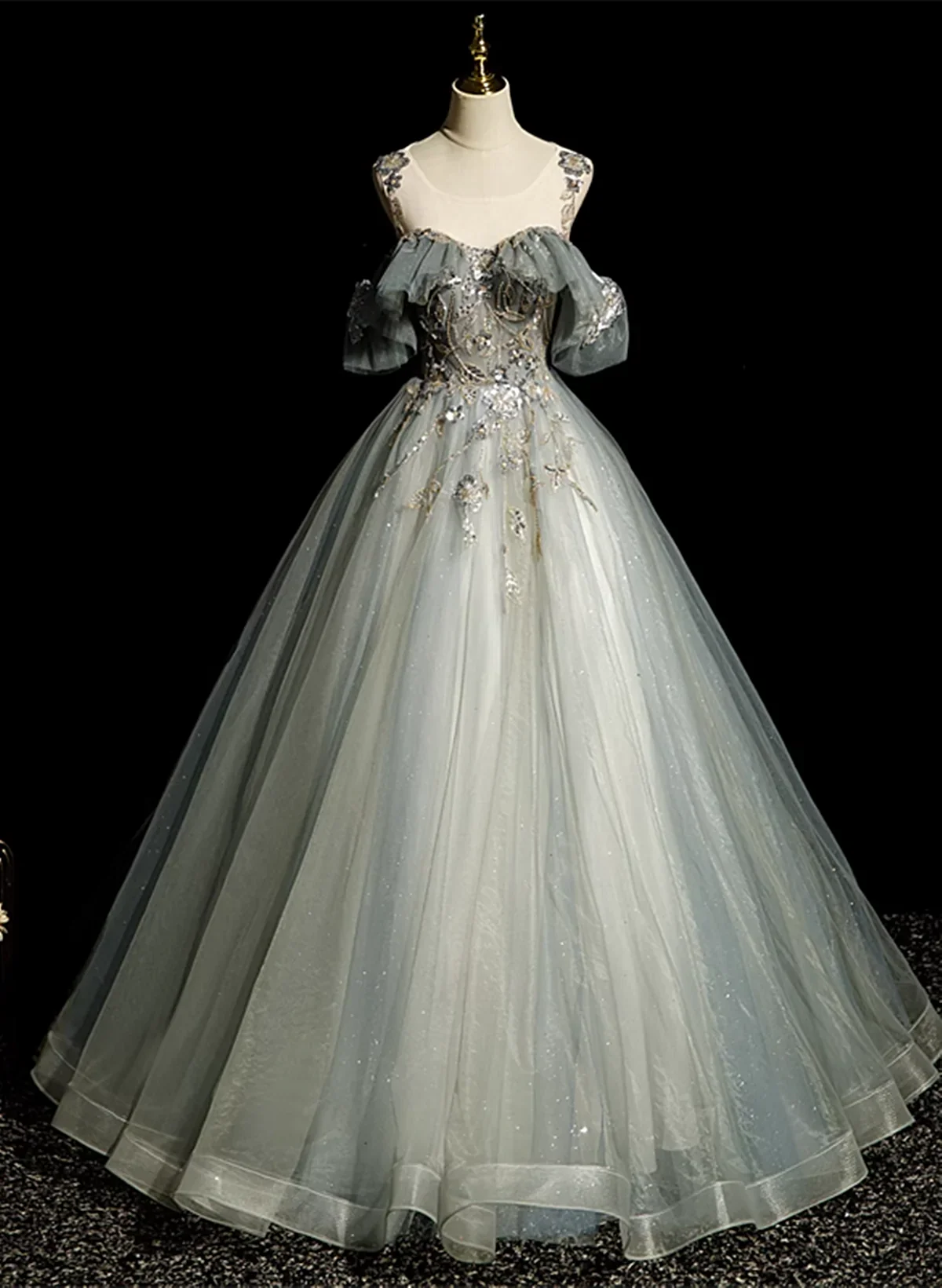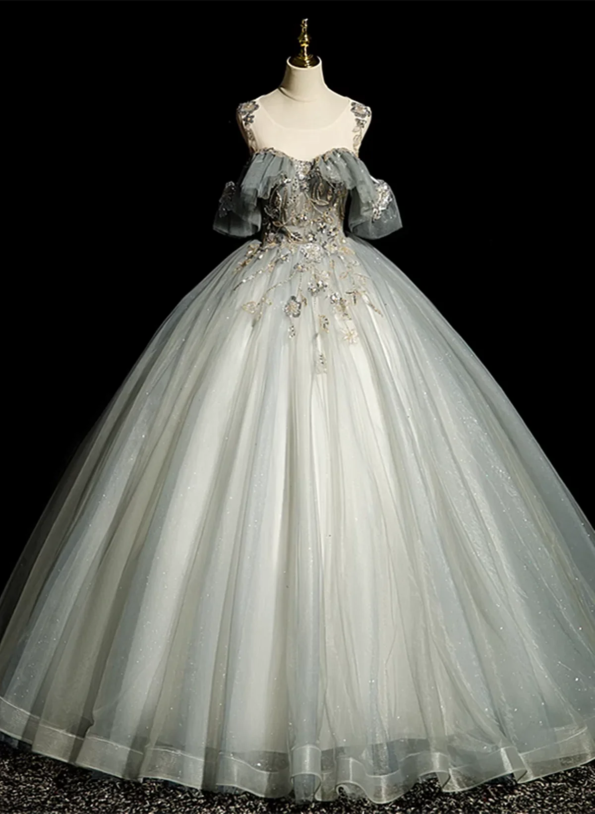 Green Ball Gown Round Neckline with Lace Sweet 16 Dress, Green Tulle Formal Dress HZ1024