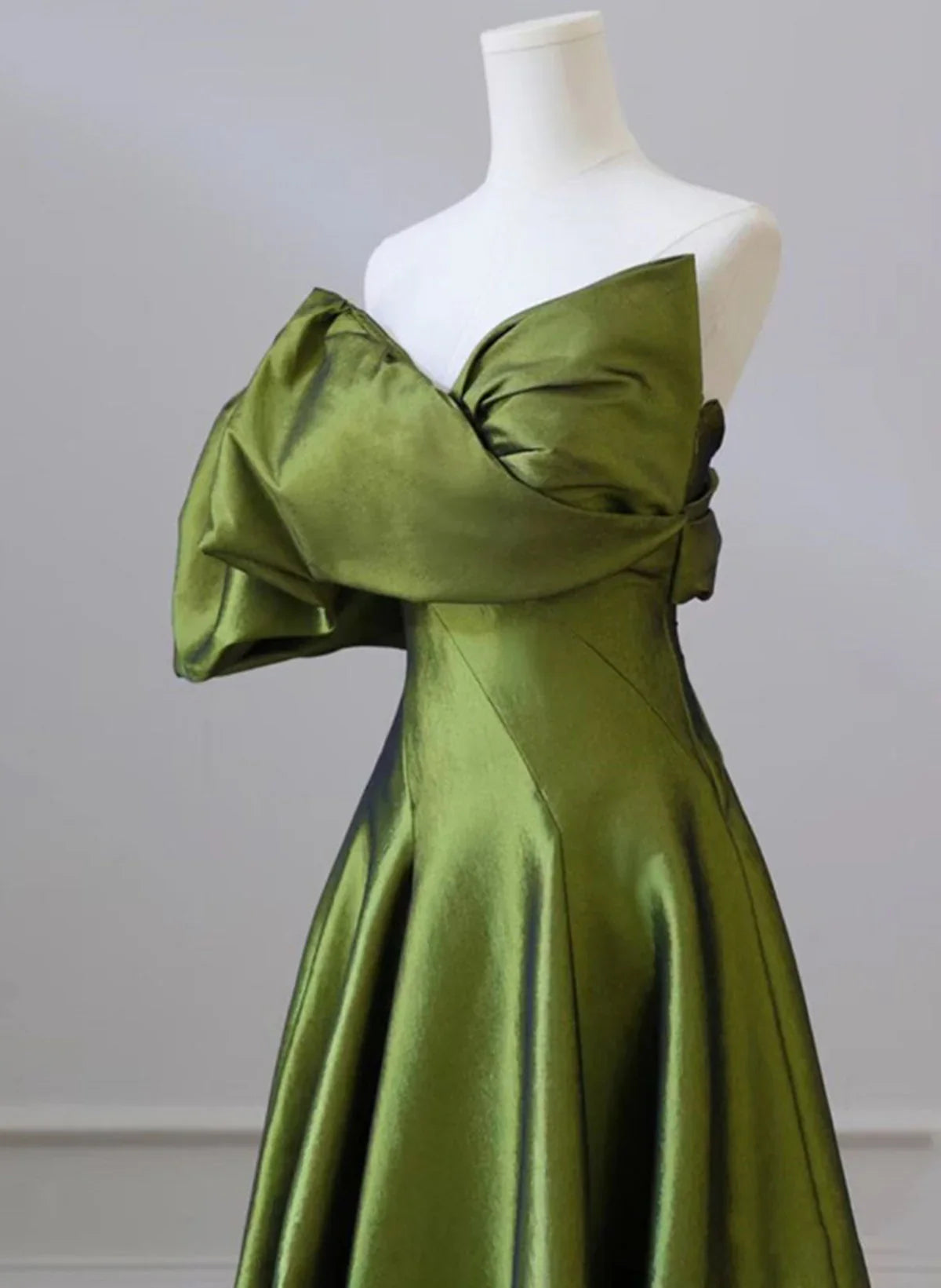 Green One-Shoulder Short Sleeves Backless Sweep Train Prom Dress, Green Party Dress HZ1024