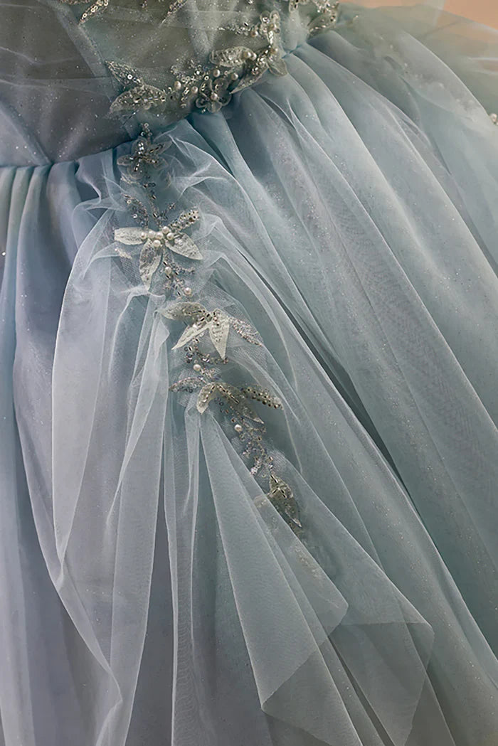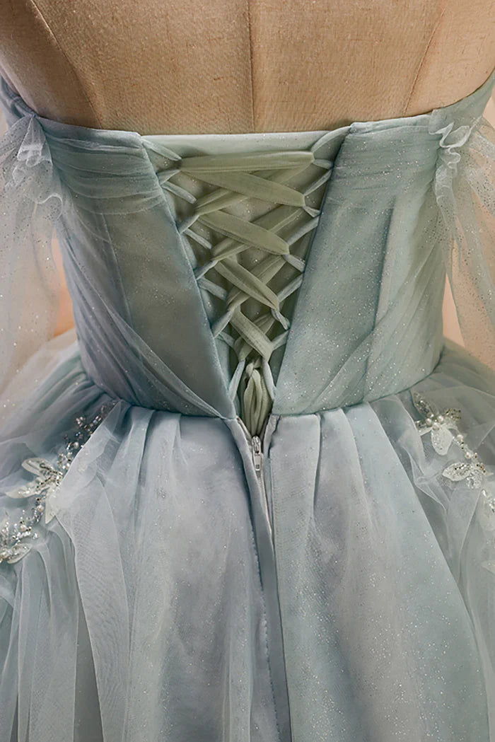 Green Tulle Beaded Short Prom Dress, Cute Off Shoulder Homecoming Dress HZ1024