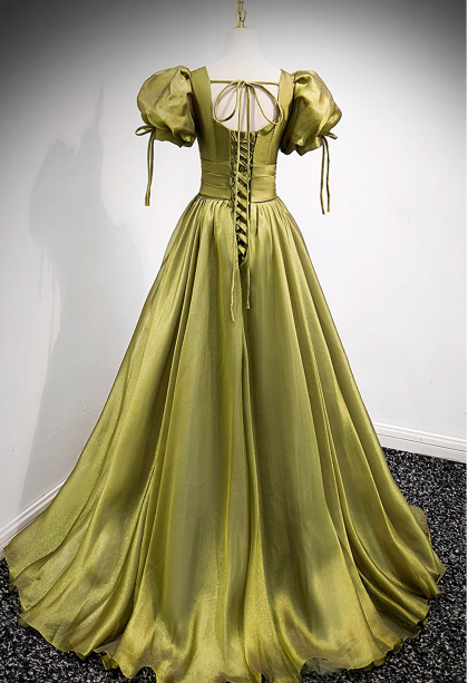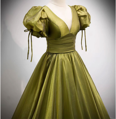 Green V-Neck Long Prom Dresses, A-Line Evening Dresses HZ1024