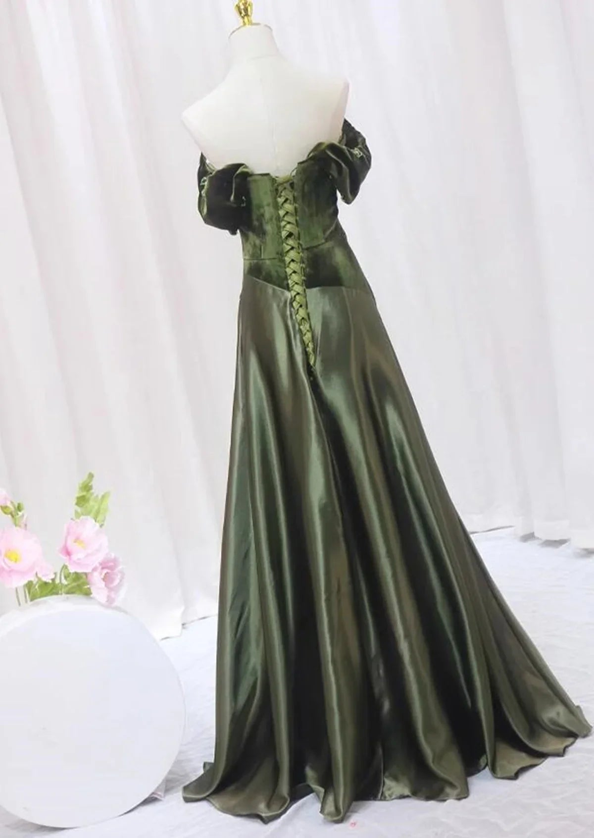 Green Velvet and Satin Off Shoulder Long Party Dress, Green Evening Dress Prom Dress HZ1024