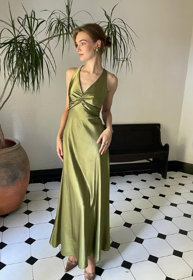 Halterneck Elegant Green Backless Satin A-Line Prom Dress Evening Gown HZ1024