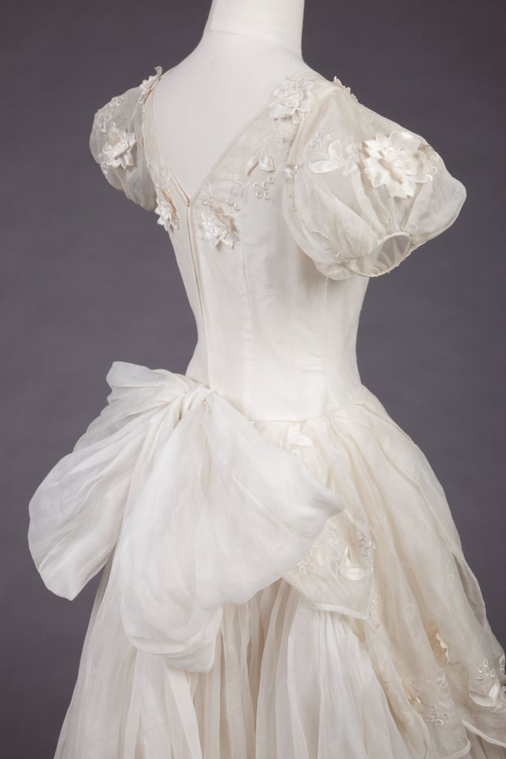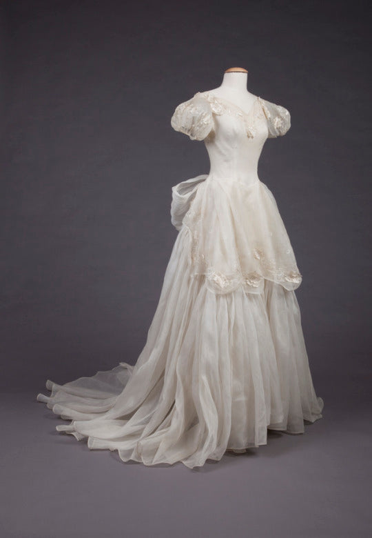 Ivory Wedding Dress Puff Sleeves V-Neck Bow Tulle Dress HZ1024