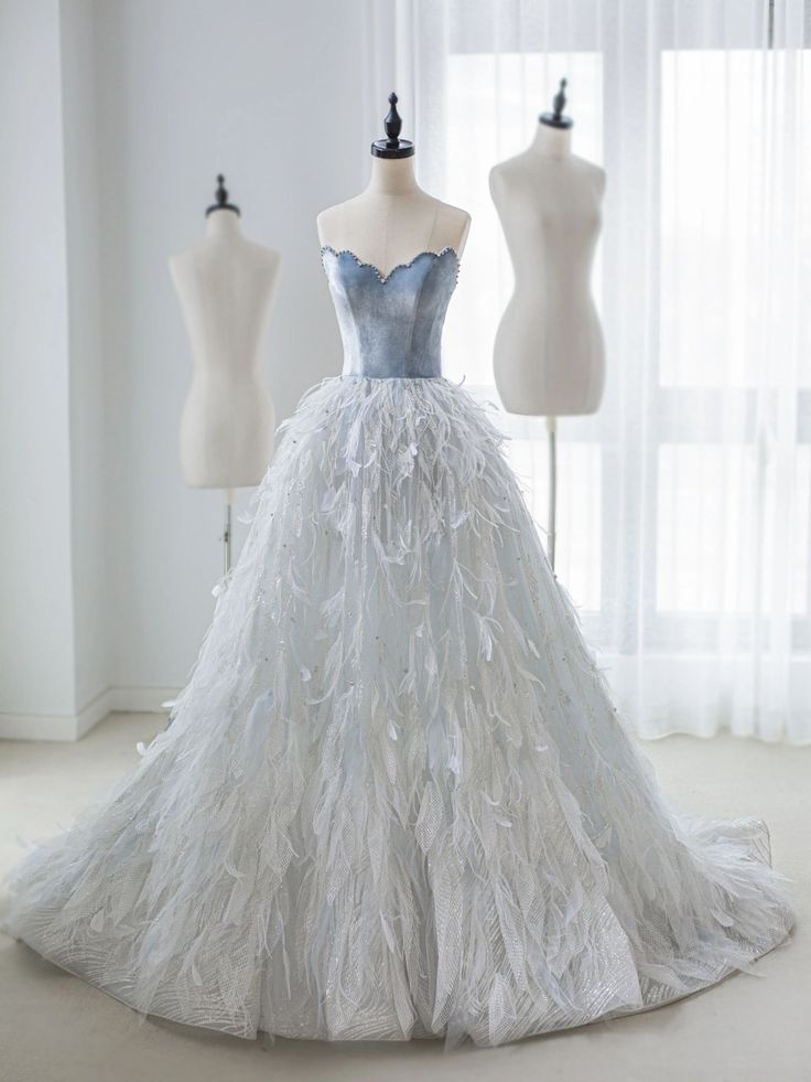 Light Blue A-Line Sheath Strapless Feather Floor Length Prom Dress HZ1024