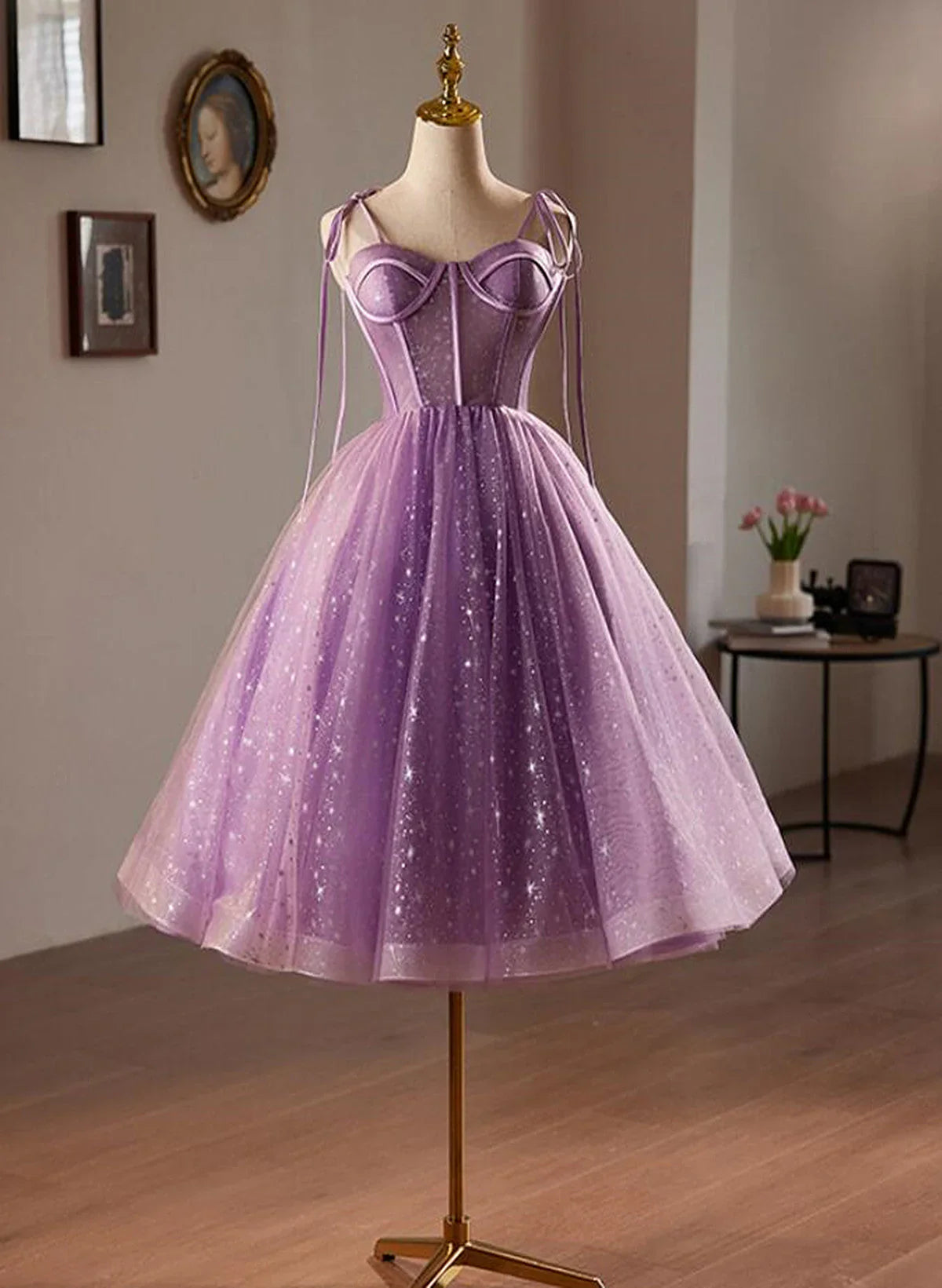 Light Purple Knee Length Straps Party Dress, Light Purple Homecoming Dress HZ1024