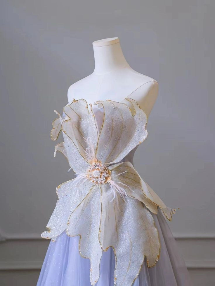 Lilac Purple 3D 3D Flower A-line Strapless Elegant Evening Gowns HZ1024