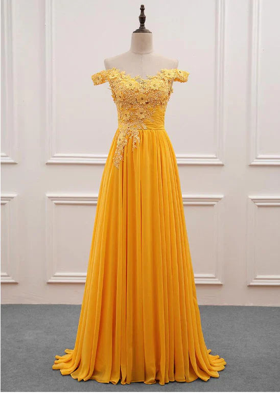 Lovely Yellow Chffion Off Shoulder Tulle with Lace Party Dress, A-line Yellow Prom Dress HZ1024