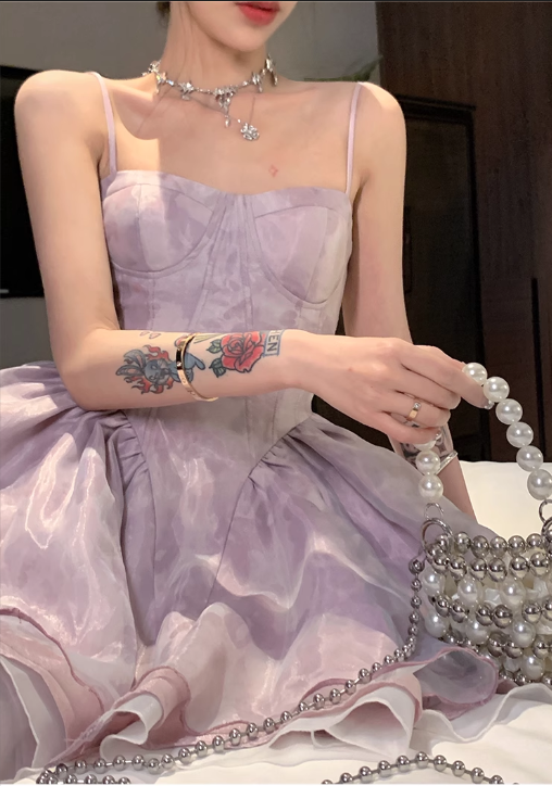 New Fashion Floral Design A-line Sleeveless Spaghetti Strap Puffy Dress HZ1024